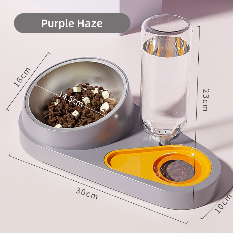 - 2-in-1 Design: Combines a food bowl and an automatic water fountain for ultimate convenience.