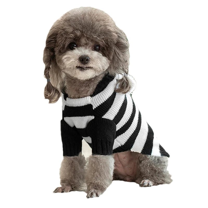 This Cozy Knitted Dog Sweater is perfect for keeping your dog warm during the chilly autumn and winter seasons. Made from high-quality, breathable fiber, this sweater provides your pup with a comfortable and snug fit, ensuring they stay cozy even in colder weather. Its classic striped pattern and fashionable design will make your dog look adorable while offering protection from the elements. Whether you’re taking them on a walk or snuggling at home, this stylish sweater is the perfect accessory for small to medium-sized dogs.The soft knitted fabric makes it ideal for all-day wear, preventing your dog from feeling restricted while moving. It’s lightweight yet provides exceptional warmth without compromising on breathability. This sweater is easy to slip on and off, making dressing up your dog hassle-free. The high-quality materials also ensure durability, so it’s a great choice for active pups who love to play outdoors.